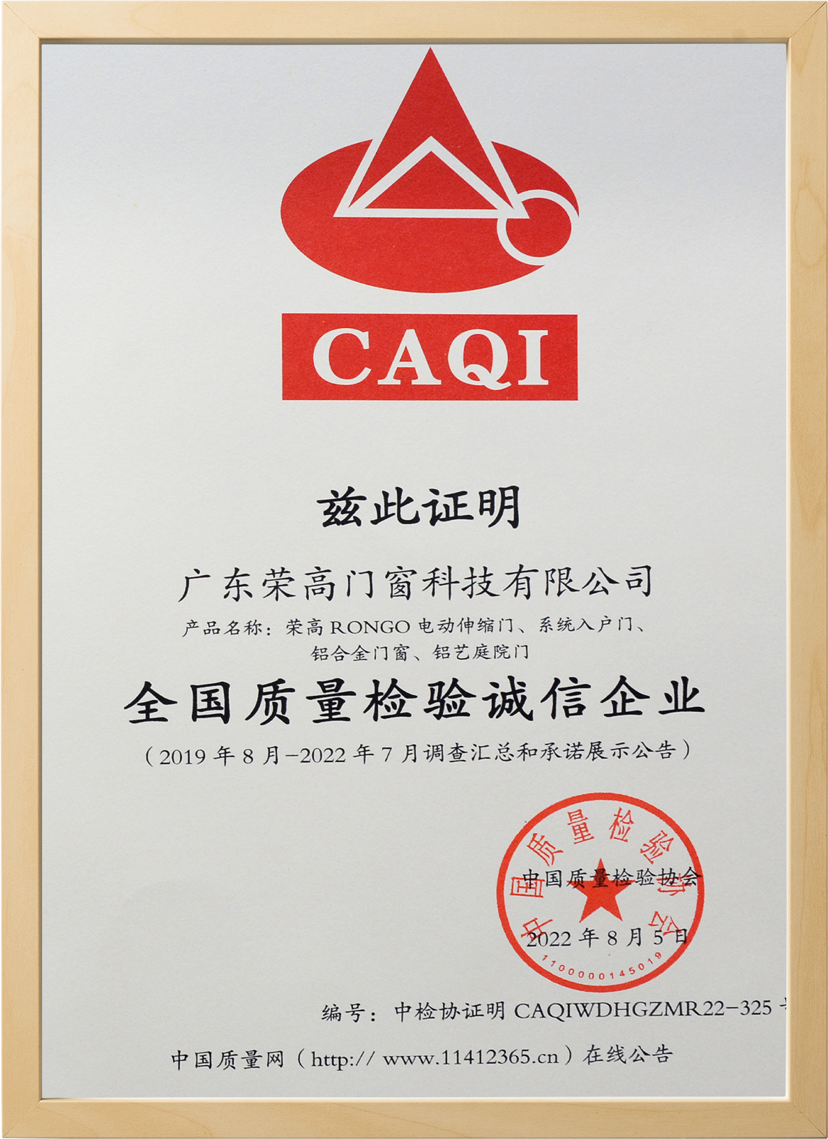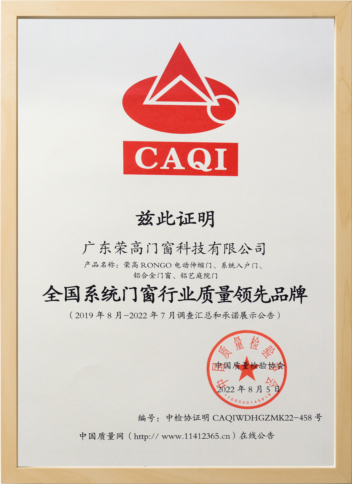 Honor Certificate荣高荣誉证书
